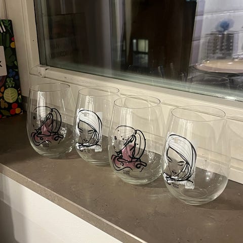 KOSTA BODA glas med motiv på ytan. Glasen har stjälk och är avsedda för dryck. Motivens färger varierar och glasen är tillverkade av klart glas.