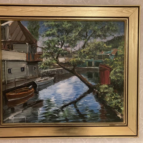 Målning av Tage Fougstedt Långvik, Möja 1945.