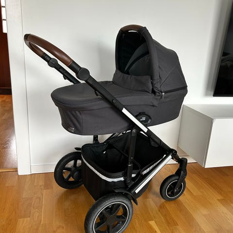 Britax Smile 3 barnvagn med babyskydd Primo och tillhörande bas. Inkluderar liggdel, sittdel, regnskydd, myggnätt, reflex och parasoll.