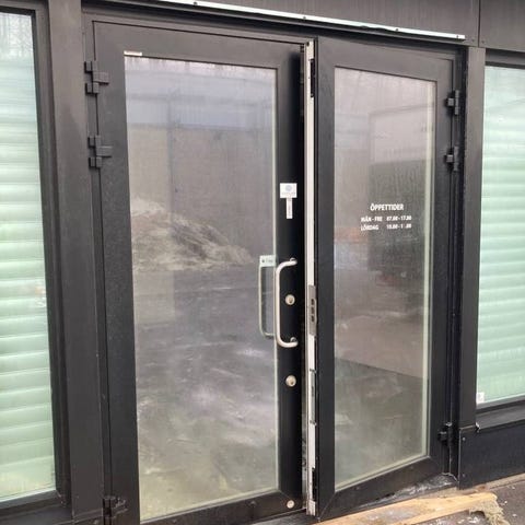 Isolerkassett med säkerhetsglas tillsammans med brutna köldbryggor i dörr, karmsidor och räls.