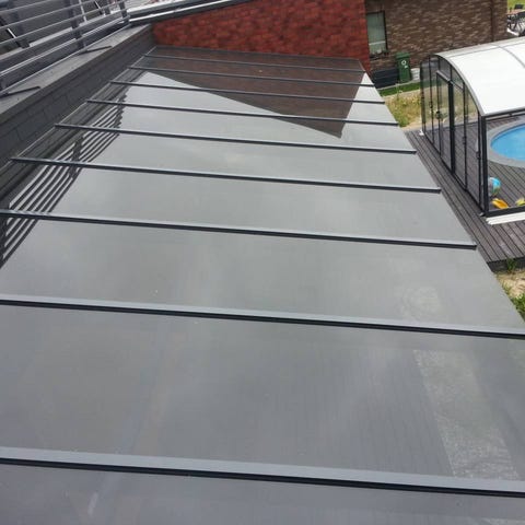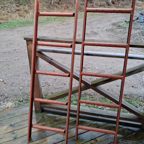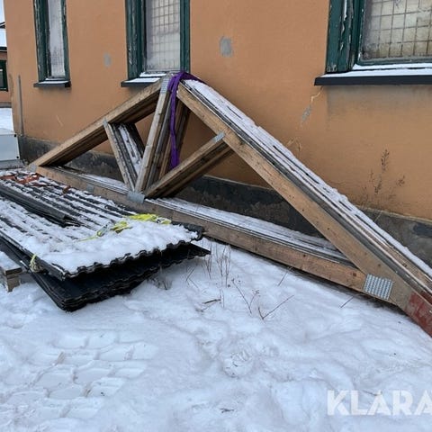 7 stycken helt nya låga takstolar, förvarade inomhus.