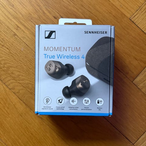 Sennheiser Momentum 4 trådlösa hörlurar i svart färg. Hörlurarna är designade för trådlös användning med upp till 60 timmars batteritid. De kan dock också användas med sladd. De har överöronsdesign med mjuka öronkuddar för komfort vid längre användning. Produkten levereras med ett hårt fodral för förvaring och skydd.