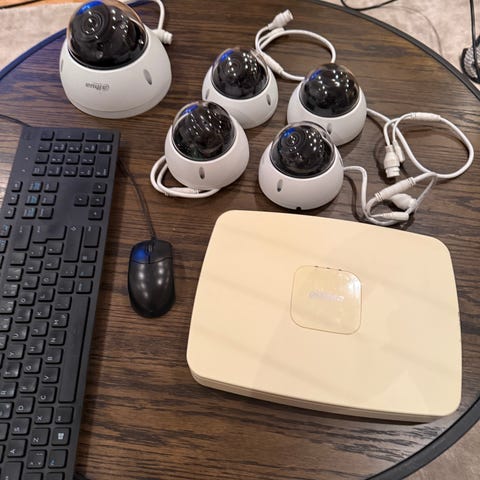 Tyco säkerhetssystem inklusive 7 kamrasensorer, 4 rök/brandsensorer, basenhet uppdaterad till 4G , 2 manöverpaneler och 3 dörr/fönstersensorer. Systemet är utformat för övervakning och brandlarm i bostäder eller mindre lokaler. Inkluderar olika sensorer och en kontrollenhet med display. Nya batterier i dörrsensorer och rökdetektorer
