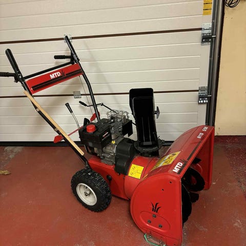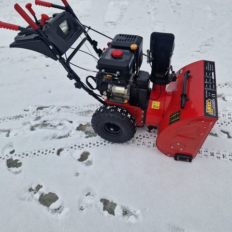 Har en snöslunga i märke Meec som har 3 växlar fram och 2 bak. Tar inte mycket plats i garaget, bra och smidig.