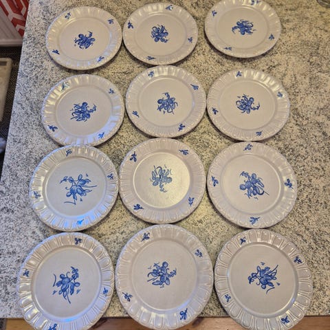 12st delar varav 4st tallrikar, 1st assiett och resten uppläggningsfat samt såsskål.