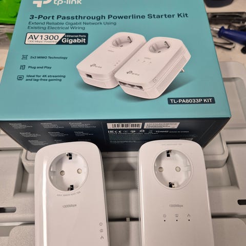 Säljer ett TP‑Link TL‑WPA4220KIT i mycket bra skick. Det är ett powerline‑kit som använder elnätet i hemmet för att ge stabil internetuppkoppling även i rum där WiFi normalt är svagt. Den inbyggda WiFi‑extendern gör det enkelt att få bättre täckning i hela bostaden.