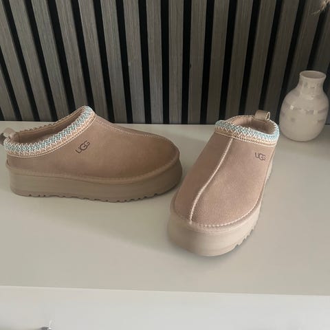 UGG tofflor i storlek 36, brun färg. Tillverkade i mjukt material med vadderad insida för komfort. Passar för inomhusbruk och utomhusbruk.