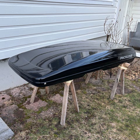 Roof Box is in great condition. Was mostly kept in the garage. Roof racks have some small signs of usage on the keyhole.