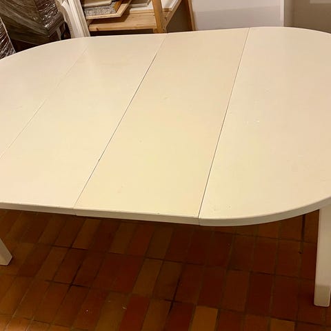 Matbord (Sandhamn-kopia) vitt 200x95 cm (inkl en 40 cm iläggsskiva), stadigt, höjd 75 cm