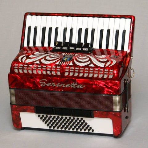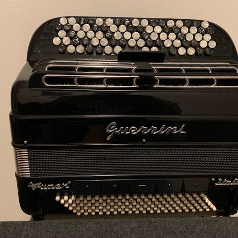 Mycket fint 3-körigt violinstämt (16-8-8) Borsini knappdragspel. Ett italienskt kvalitetsinstrument säljes med tillhörande väska.