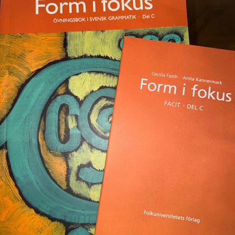 Form i fokus består av tre övningsböcker i svensk grammatik för undervisning i sfi, svenska som andraspråk och svenska som främmande språk. Böckerna är avsedda för vuxna som nyligen börjat sina svenskstudier eller som behöver en repetition av grunderna i grammatiken från nybörjarnivån.