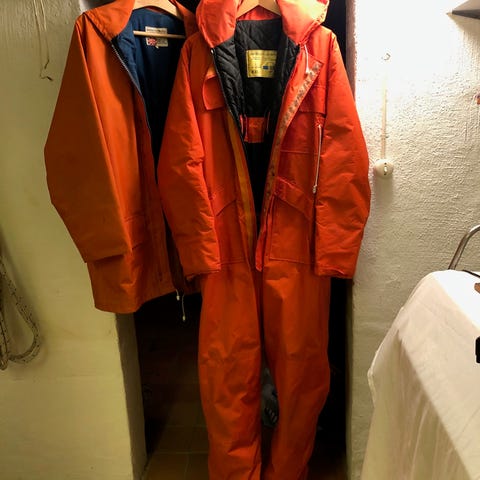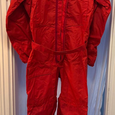Musto seglaroverall i röd och vit färg. Overallens design inkluderar ett bälte i midjan för justerbar passform. 100% nylon. Den ena är Large och den andra Small. Passar för segling och andra vattenrelaterade aktiviteter.