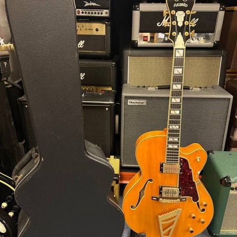 En gitarr i nyskick. Säljes med original hardcase. Halvakustisk gitarr med splitbara humbuckers. 6-vägs mickväljare, gör att man kan splitta med mickväljaren. Gold hardwere, Grover låsbara stämmisar.
