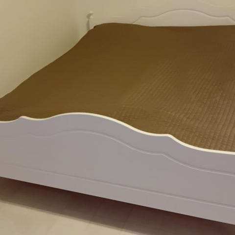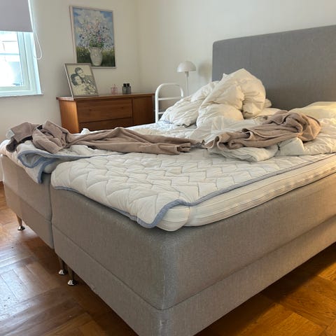 Sängen är nedmonterad med gavel och sängdel för enkel transport vid hämtning av sängen.