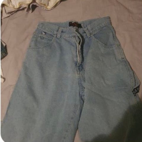 Retrojeans av märket Bon Bon märka med storlek 10s. Ca 134-140, men ganska smala i midjan. Längd ben 66cm, bredd midja 54cm. Fint skick.