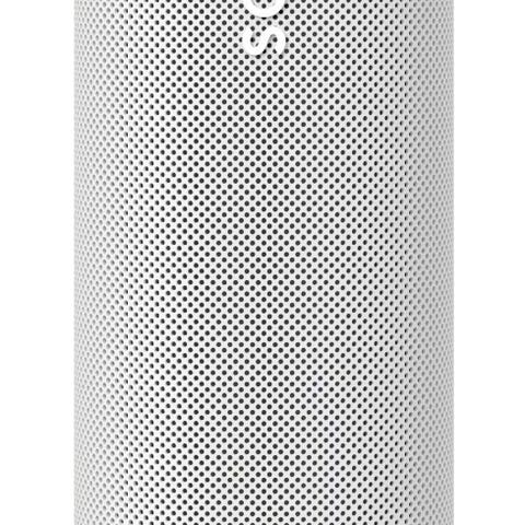 Sonos högtalare i vit färg. Designad för ljudåtergivning i olika rum och ansluts vanligtvis via Wi-Fi för trådlös musikuppspelning. Passar för hemmabruk och kan monteras på vägg eller placeras fritt.