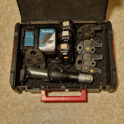 Batteridriven Rems pressmaskin med två batterier + laddare.