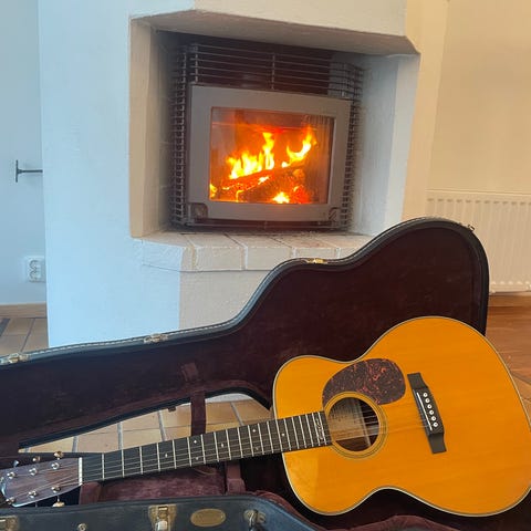 Jättefin 2020 Martin 000-28. Ett K&K Pure Mini micksystem finns installerat, med tele-utgång i knoppen för axelbandet. Det är alltså bara att plugga in den i en förstärkare eller i ljudkort/mixer/preamp för inspelning. Kan såklart också användas till pedaler av alla slag.