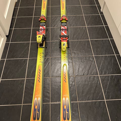 För ca 25 år sedan användes dessa skidor av ca hälften av världseliten i storslalom. En riktig hajp rådde då kring dessa skidor. Detta exemplar är den boxbyggda varianten köpta på alpingaraget. Dessa är den konstruktion som eliten använde. Under krävs såklart lite prep men en vanlig slipning räcker.