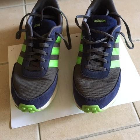 Adidas barnskor i storlek 38 för pojke. Skorna är tillverkade i material med detaljer i blått och rött. Passar för barnfot och är designade för vardagligt bruk.