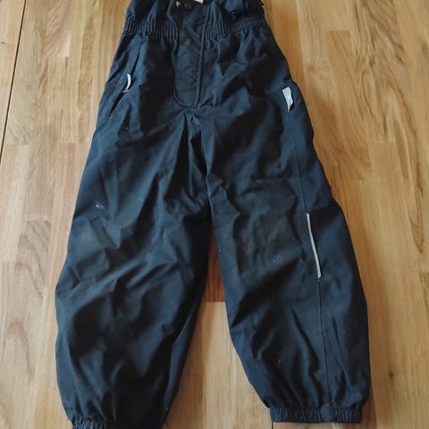 Helt nya skalbyxor med lappar kvar. Storlek 110. Vind- och vattentäta (vattenpelare 10000), tejpade sömmar, avtagbara hängslen, justerbar midja, förstärkta knän och bak), reflexdetaljer.
