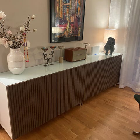 Superfin bänk som egentligen är en tv bänk som vi använder som förvaring för skor osv i hallen, köpt secondhand därav vet jag inte märket