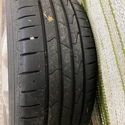 Original fälgar med sommardäck från en Opel Astra som blev kvar efter försäljning.
