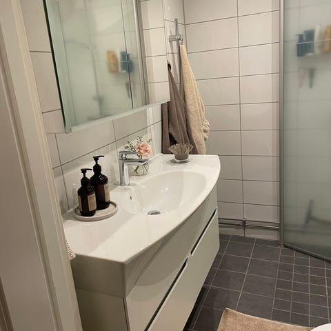 * kommod med tvättställ från Svedbergs, blandare från Hafa & bottenventil Easy clean