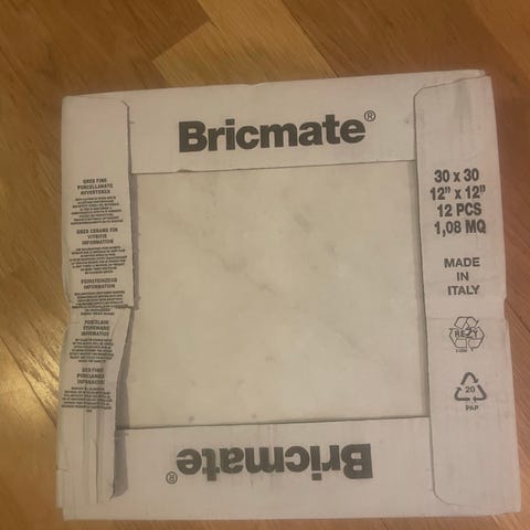 Har lyckats få upp 18 hela plattor, 60x30 cm, c:a 3,3m2. Medföljer även några enstaka passbitar.