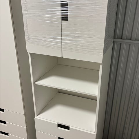 Säljer ett stilrent och praktiskt tvättskåp från IKEA, modell NYSJÖN. Perfekt att ha ovanför tvättmaskin eller torktumlare för extra förvaring av handdukar, rengöringsmedel och andra badrumsartiklar.