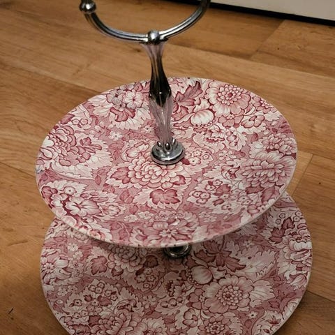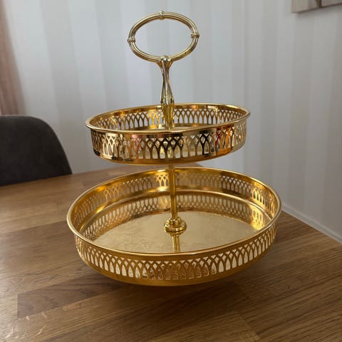 5 st äldre fat kakfat porslin med guldkant 1950-talet