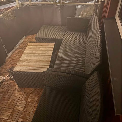 Utemöbelset i rotting med dynor