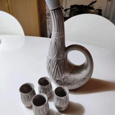 Jättefina små muggar/koppar med handtag. Brukades till varm Punch till ärtsoppan.