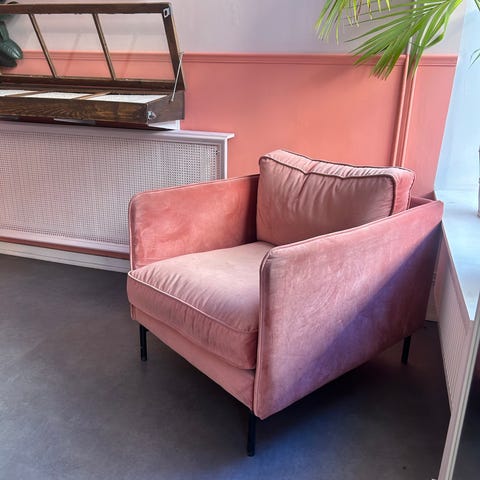 Fin rosa sammetsfotölj