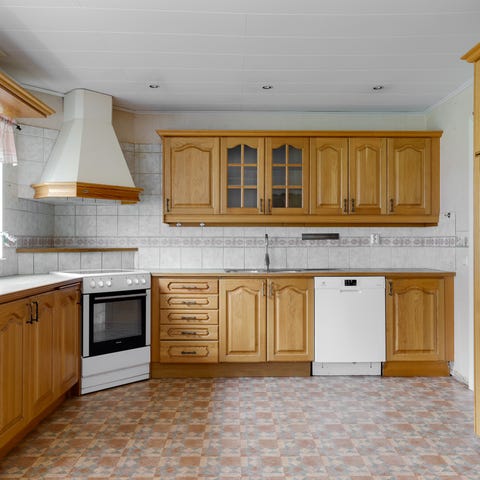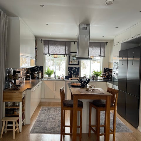 Totalhöjd på köket är 254 cm, vi har 260 cm i takhöjd.