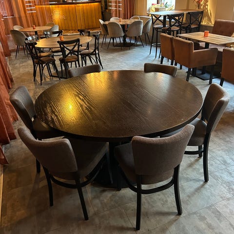 18 stolar + 4 fyrapersoners bord kvalitetsmöbler i bra skick. Nypris ca 35000kr. Säljes samlat.