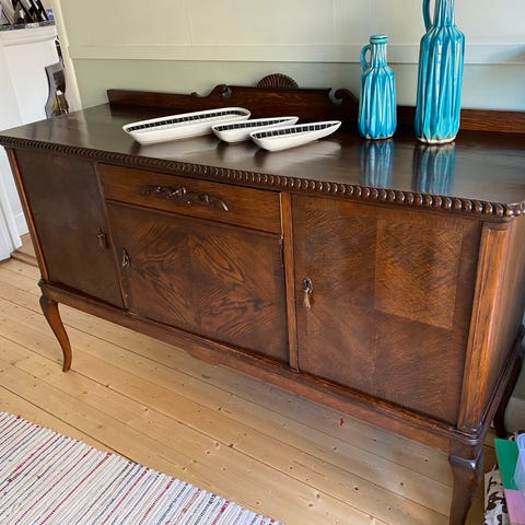 Litet och fint sideboard från 60-talet med låda. Bordet är fanérat i någon form av ädelträ.