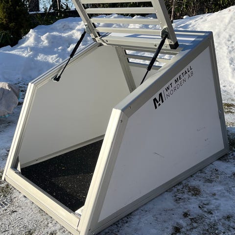 Måttanpassad dubbel hundbur från Alfta Buren inkl. måttanpassad dyna och instegsskydd.