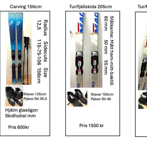 Mycket bra skick - komplett skidor, stavar, pjäxor