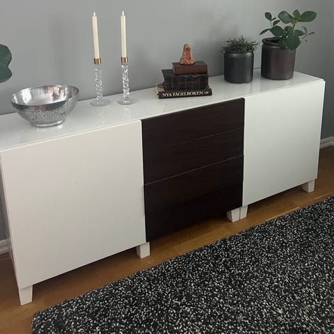 Bestå skänk / sideboard från IKEA, svart med träfärgen toppskiva. I väldigt fint skick.