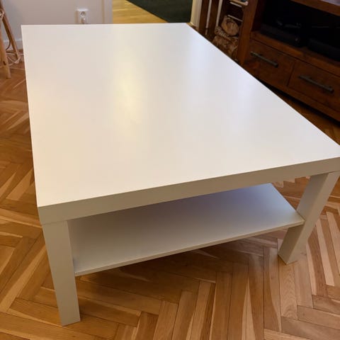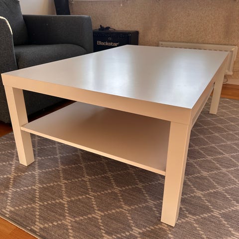 Säljer ett klassiskt vitt LACK soffbord från IKEA. Bordet är rymligt och har en praktisk hylla undertill för förvaring.