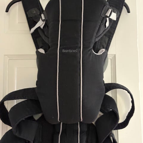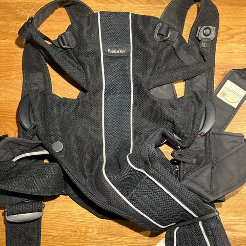 BabyBjörn bärsele med en maxgräns om 10kg. Bärselen är missfärgad i tyget men fullt fungerande i övrigt.