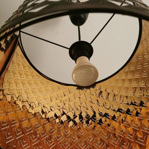 Skapar ett dekorativt ljusmönster i rummet när ljuset skiner genom den perforerade skärmen.