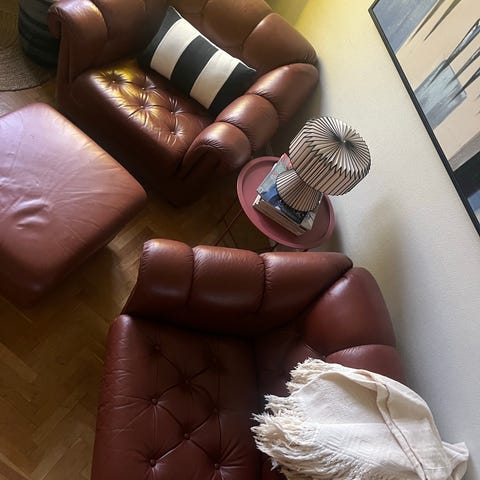 Vinröda sammetsfåtöljer och 3-sitssoffa från Mio