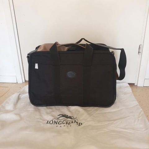 Longchamp Boxford duffelbag i storlek L. Med axelrem samt kombinationslås. Mått: 45cm (L) x 35cm (H) x 23cm (W). Volym: 30L. Ett huvudutrymme samt mindre sidofack . Perfekt som weekendbag eller resväska. I fint skick!