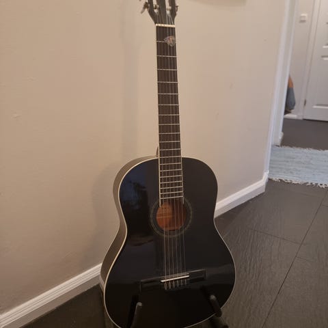 Klassisk gitarr av märket Cataluña. Gitarren kommer med en tillhörande svart väska av märket Rockbag.