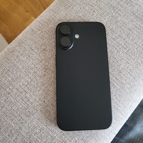 Apple iPhone 16 Plus mobiltelefon med 128 GB lagringskapacitet i svart färg.