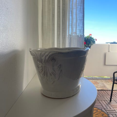 Kruka tillverkad i betong med en robust och väderbeständig design. Passar för utomhusbruk och kan användas för plantering av olika växter. Storleken gör den lämplig för trädgård eller uteplats.