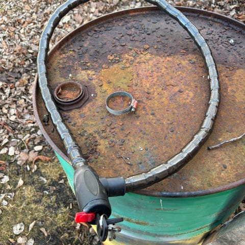 Stege 4,5 m lång för att fästa på tak eller huset eller som spaljé. Rostig utanpå men ej sönder.