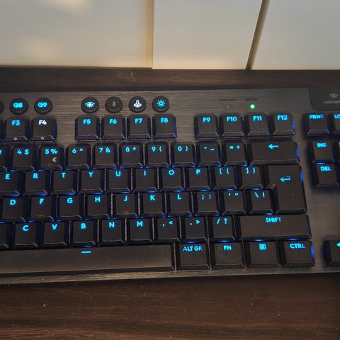 PBT Keycaps Cherry Profile from Amazon: I like the clean, white readable keys so picked something called "Metropolis" theme, it has a lot more extra keycaps that I don't use